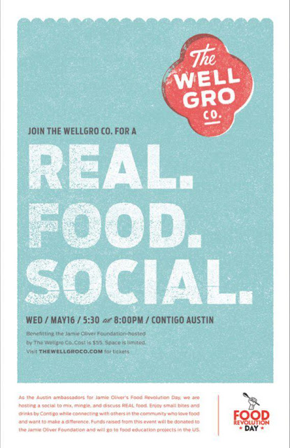 As the Austin ambassadors for Jamie Oliver's Food Revolution Day, The Wellgro Co. is hosting a social to mix, mingle, and discuss REAL food. Guests will be able to enjoy small bites and drinks by Contigo while connecting with others in the community who also love food and want to make a difference. If that's not exciting enough, the funds raised from this event will be donated to the Jamie Oliver Foundation and will go to food education projects in the US.